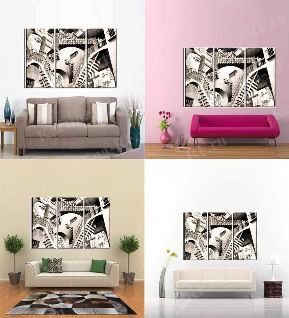 Модульная картина Лестницы отлично подойдет для любого современного интерьера. Яркие и четкие краски картины хорошо защищены акриловым безвредным лаком. Монтаж картины не составит хлопот с использованием вложенных настенных креплений.