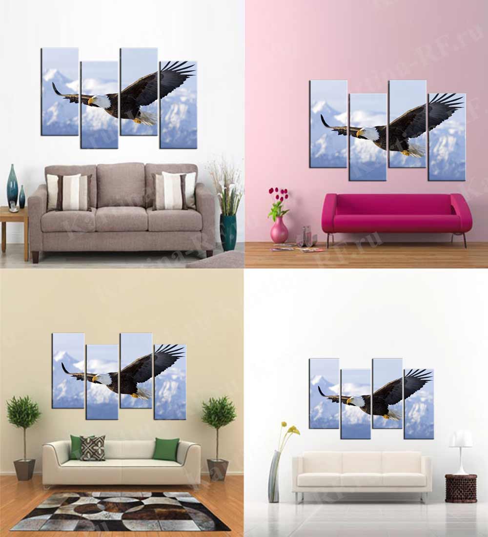 Модульная картина Орел отлично подойдет для любого современного интерьера. Яркие и четкие краски картины хорошо защищены акриловым безвредным лаком. Монтаж картины не составит хлопот с использованием вложенных настенных креплений.