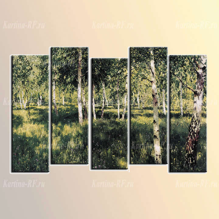 Картина модульная на холсте Березовая роща изготавливается путем фотопечати на специализированном холсте высокой плотности. Холст натягивается на подрамник 2х4 см из натурального массива сосны.