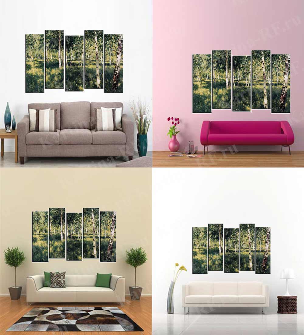 Модульная картина Березовая роща отлично подойдет для любого современного интерьера. Яркие и четкие краски картины хорошо защищены акриловым безвредным лаком. Монтаж картины не составит хлопот с использованием вложенных настенных креплений.